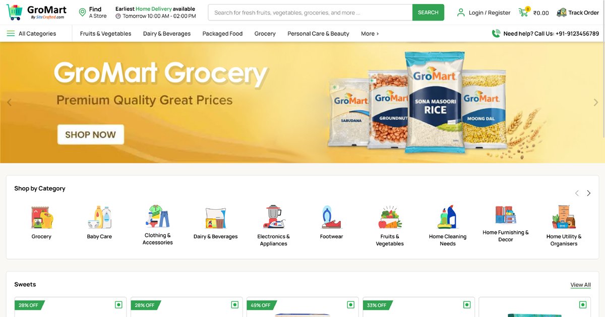 With the growing demand for online grocery delivery, having a professional ecommerce website helps businesses reach more customers and manage orders efficiently. GroceryMart provides a ready-to-launch solution that allows store owners to showcase their products, accept online orders, and manage inventory easily.