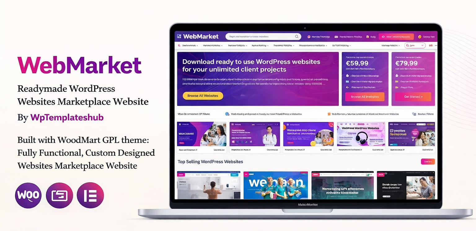This makes WebMarket ideal for entrepreneurs, agencies, and freelancers launching website marketplaces quickly.