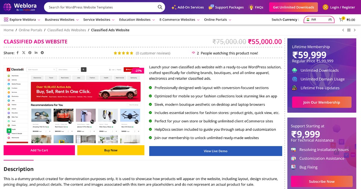 WebMarket is a ready-to-launch readymade websites marketplace WordPress platform professionally designed by Wptemplateshub.com for entrepreneurs, web agencies, freelancers, and digital product sellers. It provides a professional online platform to sell ready-made websites, templates, landing pages, digital products, and business website solutions with a smooth and secure purchasing experience.